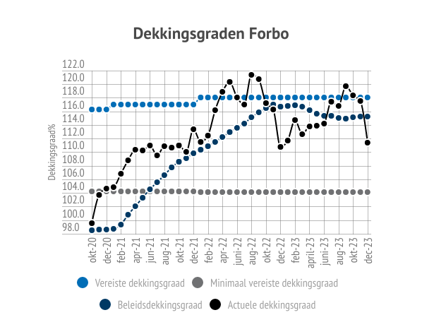 Het bestuur heeft in december 2023 besloten tot een indexatie van 3,5% per 1 januari 2024. Dit betekent dat de pensioenuitkeringen en pensioenaanspraken worden verhoogd. Als gevolg hiervan nemen de verplichtingen van Forbo toe. Die toegenomen verplichtingen zorgen voor een daling van de dekkingsgraad.