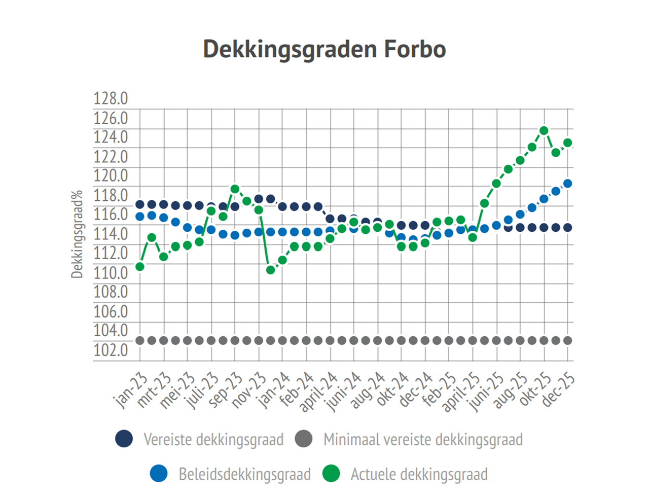 De dekkingsgraad is een belangrijke indicator voor de financiële gezondheid van Pensioenfonds Forbo. Het geeft aan of we voldoende geld hebben om aan onze toekomstige pensioenverplichtingen te voldoen.